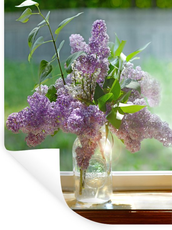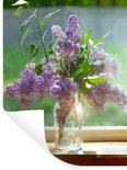 Sticker Muursticker Lilas - Vase en Verres avec lilas - 60x80 cm - film adhésif autocollant - sticker mural repositionnable