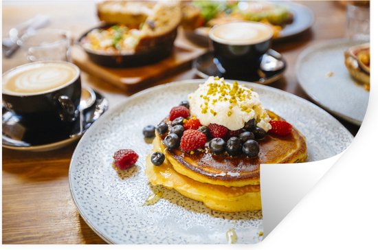 Sticker Muursticker Petit Déjeuner - Détente Petit Déjeuner avec crêpes - 60x40 cm - Film adhésif autocollant - Sticker mural repositionnable