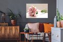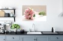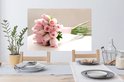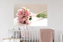 Sticker Muursticker Rose rose - bouquet de rose rose sur tableau blanc - 90x60 cm - film adhésif autocollant - sticker mural repositionnable