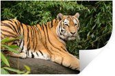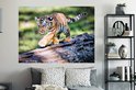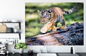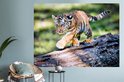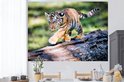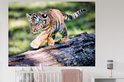Sticker Muursticker Tigre - Jeune tigre marche sur un tronc d'arbre - 160x120 cm - film autocollant - sticker mural repositionnable XXL /