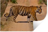 Sticker Muursticker Tigre sur fond blanc - Tigre avec gueule ouverte sur fond blanc - 60x90 cm - film adhésif autocollant - sticker mural repositionnable