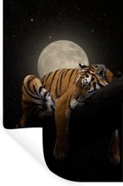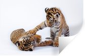 Sticker Muursticker Tigre sur fond blanc - Tigre endormi sur fond blanc - 60x40 cm - film autocollant - sticker mural repositionnable