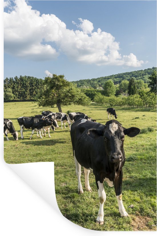 Sticker Muursticker Vache frisonne Luxurydeco - Troupeau de vaches paissant en België - 40x60 cm - Film adhésif autocollant - Sticker mural repositionnable
