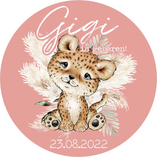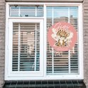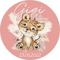 Sticker naissance-autocollant fenêtre rond Bébé est né-lion rose- naam et date de naissance-65x65cm