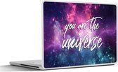La taille de l'autocollant pour ordinateur portable est de 30x21 cm. L'autocollant convient aux ordinateurs portables 11 pouces et 11,6 pouces. L'autocollant ne convient pas tout à fait? Ensuite, vous pouvez facilement le recadrer vous-même.