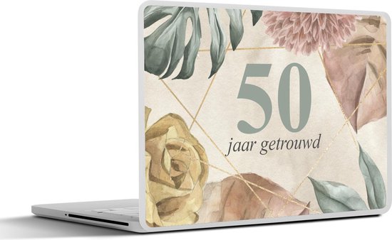 Sticker ordinateur portable - 11,6 pouces - Mariage - 50 ans de mariage - Fleurs - Cadeau Saint Valentin