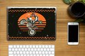 Un motocycliste avec un fond orange et noir.