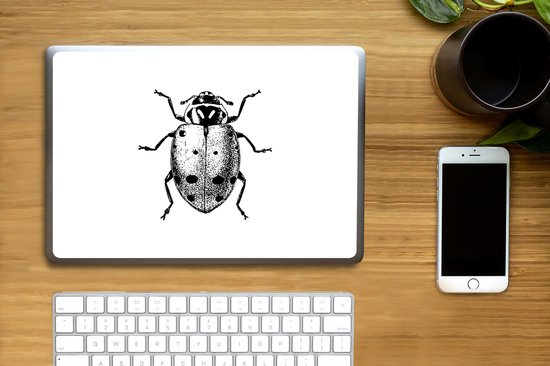 Sticker ordinateur portable - 12,3 pouces - Vintage - Coccinelle - Insectes - Zwart et blanc