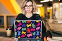 Motif de chats colorés avec des couleurs vives.