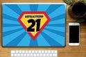 Cape de super-héros avec la citation ''félicitations 21'' comme cadeau pour un anniversaire.