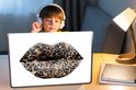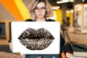 Une paire de lèvres détaillées avec un imprimé tigre sur un fond uni. Les lèvres sont sur un fond blanc.