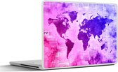 Sticker ordinateur portable - 17,3 pouces - Wereldkaart - Peinture - Rose