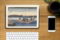Autocollants pour ordinateur portable - Regarder le coucher de soleil sur le pont Ryogoku depuis la rive d'Onmaya - Peinture de Katsushika Hokusai - Housse pour ordinateur portable