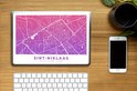 Plan de ville violet et rose de Sint-Niklaas en België.Spécifications produit