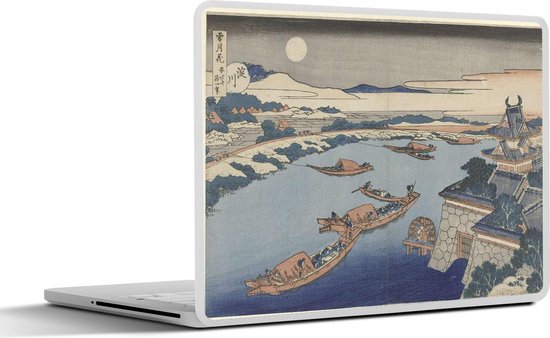 Sticker pour ordinateur portable - 15,6 pouces - La rivière Yodo au clair de lune - Peinture de Katsushika Hokusai
