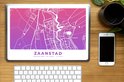 Plan de la ville de Zaanstad aux Nederland. La carte a des tons violets et roses.