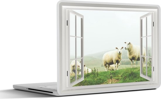 Autocollants pour ordinateur portable - Vue à travers - Herbe - Mouton - Housse pour ordinateur portable
