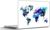 Sticker pour ordinateur portable - 15,6 pouces - Wereldkaart - Formes - Blauw