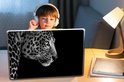 Sticker pour ordinateur portable - 17,3 pouces - Léopard - Zwart - Wit - Fourrure