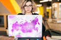 Wereldkaart de la Russie peinte à l'aquarelle rose vif.