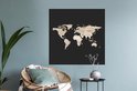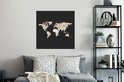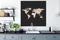 Stickers muraux - Carte du Wereldkaart - Zwart - Beige - 100x100 cm - Film Adhésif XXL