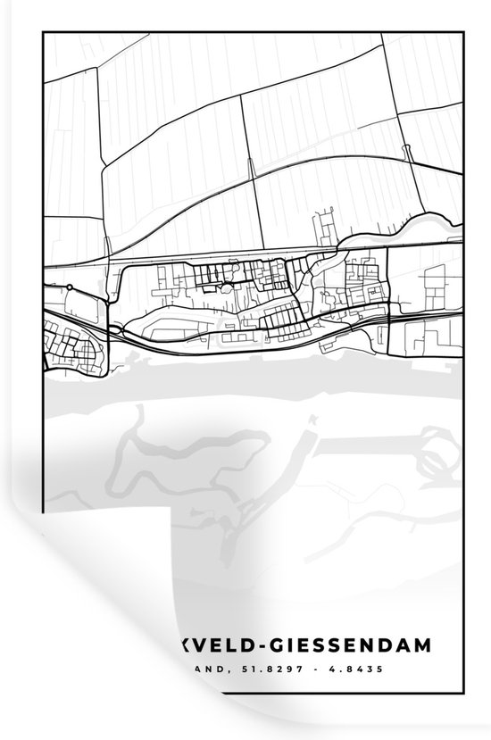 Stickers muraux - Carte - Hardinxveld-Giessendam - Carte - Plan de la ville - 40x60 cm - Feuille adhésive