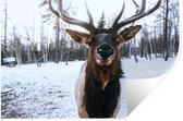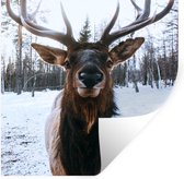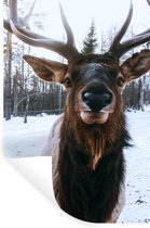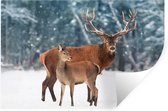 Stickers muraux - Cerf - Bois - Neige - 30x20 cm - Film adhésif