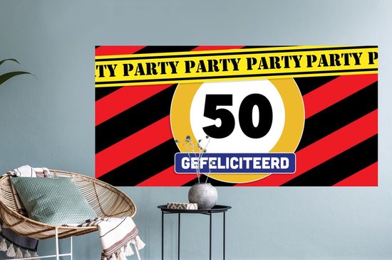 Stickers muraux - Film autocollant - Anniversaire - Décoration 50 ans - Panneau de signalisation - 120x60 cm - Film adhésif - Stickers muraux muraux Chambre d'enfant - Papier peint autocollant - Papier peint autocollant - Film autocollant