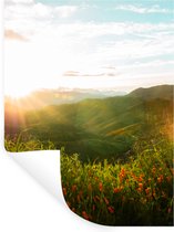 Stickers muraux - Film autocollant - Collines - Coucher de soleil - Herbe - Vert - 160x80 cm - Film adhésif - Stickers muraux muraux Chambre d'enfant - Papier peint autocollant - Papier peint autocollant - Film autocollant