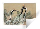 Stickers muraux - Film autocollant - Feuilles - Grue - Japonais - Vintage - 80x80 cm - Film adhésif - Stickers muraux Chambre d'enfant - Papier peint autocollant
