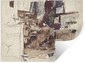 Stickers muraux - Film autocollant - Fille en kimono blanc - Peinture de George Hendrik Breitner - 50x50 cm - Film adhésif - Stickers muraux Chambre d'enfant - Papier peint autocollant - Papier peint autocollant - Film autocollant