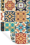 Stickers muraux - Film autocollant - Fleurs - Vintage - Motif - Blauw - Oranje - 60x90 cm - Film adhésif - Stickers muraux muraux Chambre d'enfant - Papier peint autocollant - Papier peint autocollant - Film autocollant