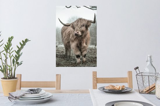 Stickers muraux - Film autocollant - Highlander écossais - Forêt - Brouillard - Vache - Animaux - Nature - 40x60 cm - Film adhésif - Stickers muraux Chambre d'enfant - Papier peint autocollant