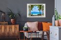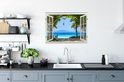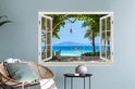 Stickers muraux - Vue - Arbre - Mer - Palmier - Collines - Plage - Blauw - Autocollants