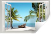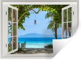 Stickers muraux - Film autocollant - Transparent - Arbre - Mer - Palmier - Collines - Plage - Blauw - 80x60 cm - Film adhésif - Stickers muraux Chambre d'enfant - Papier peint autocollant - Papier peint autocollant - Film autocollant
