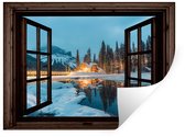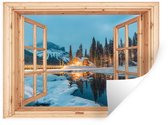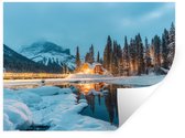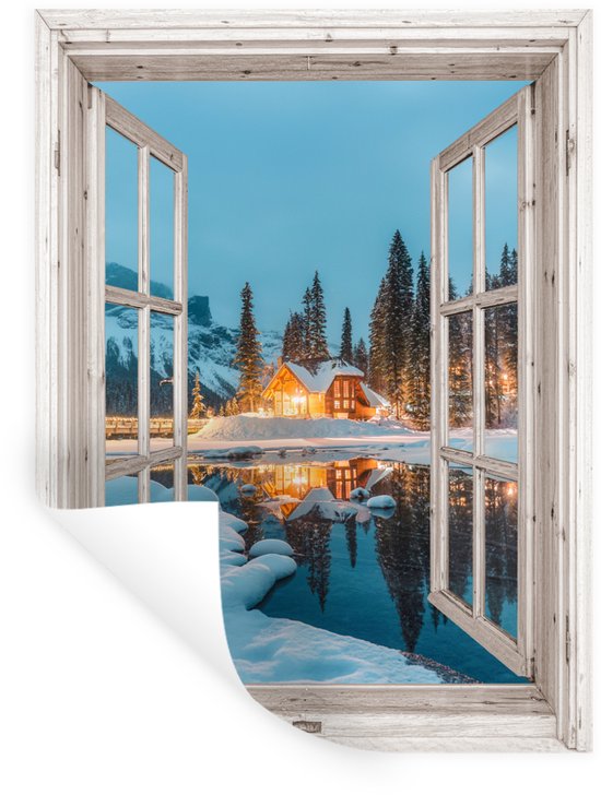 Stickers muraux - Film autocollant - Transparent - Paysage d'hiver - Nature - Maison - Montagnes - 120x160 cm - Film adhésif - Stickers muraux chambre enfant - Papier peint autocollant XXL - Papier peint autocollant - Film autocollant