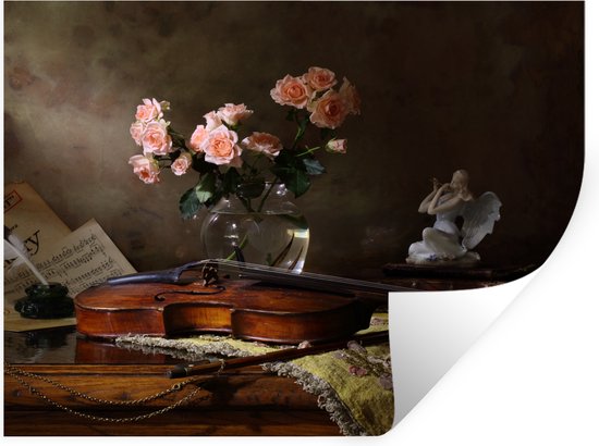 Stickers muraux - Film autocollant - Violon - Roses - Rose - Fleurs - Nature morte - 160x120 cm - Film adhésif - Stickers muraux Chambre d'enfant - Papier peint autocollant XXL
