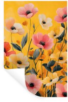 Stickers muraux - Fleurs - Jaune - Feuilles - 30x20 cm - Film Adhésif