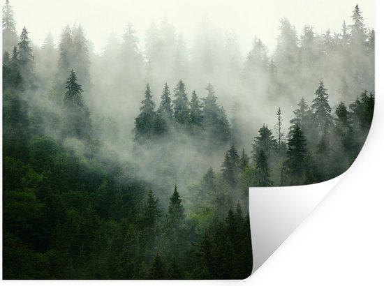 Stickers muraux - Forêt - Brouillard - Arbres - Nature - 160x120 cm - Film adhésif XXL