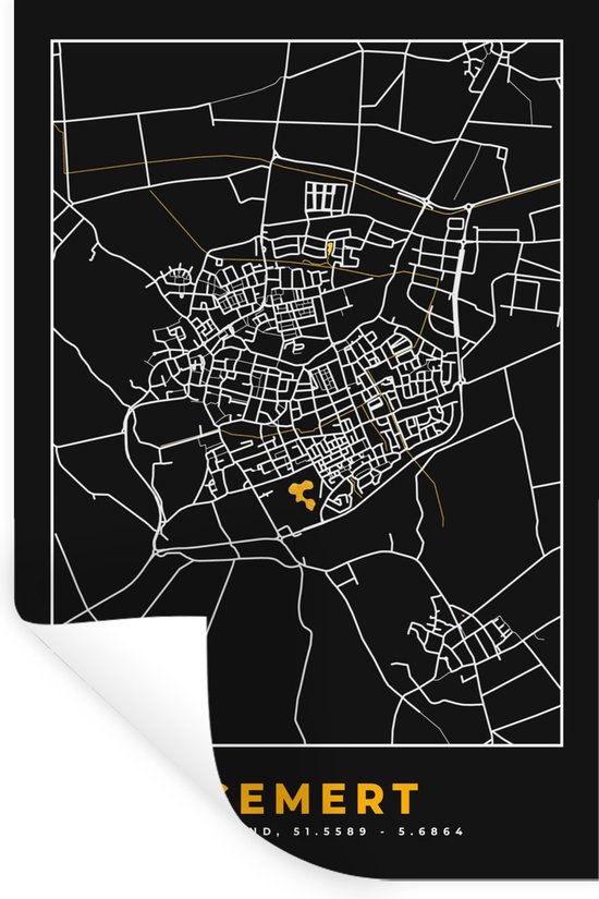 Stickers muraux - Gemert - Plan de la ville - Or - Carte - Pays- Nederland - Carte - 60x90 cm - Feuille adhésive