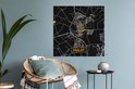 Stickers muraux - Houx - Plan de la ville - Black and Gold et Or - Carte - Carte - 80x80 cm - Feuille adhésive