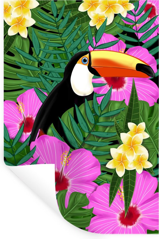 Stickers muraux - Illustration printanière toucan - 20x30 cm - Feuille adhésive