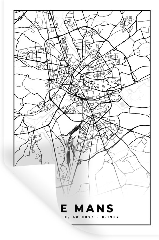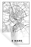 Stickers muraux - Plan d'étage - Carte - Le Mans - France - Plan de la ville - Zwart et blanc - 40x60 cm - Film adhésif