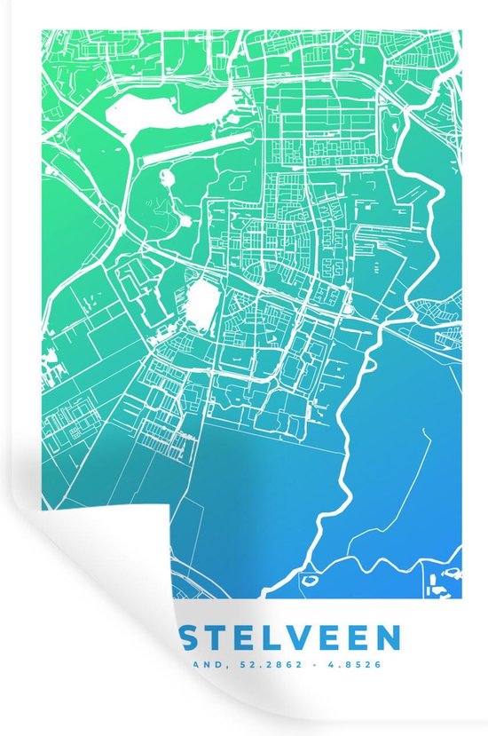 Stickers muraux - Plan de la ville - Amstelveen - Blauw - 60x90 cm - Feuille adhésive - Carte