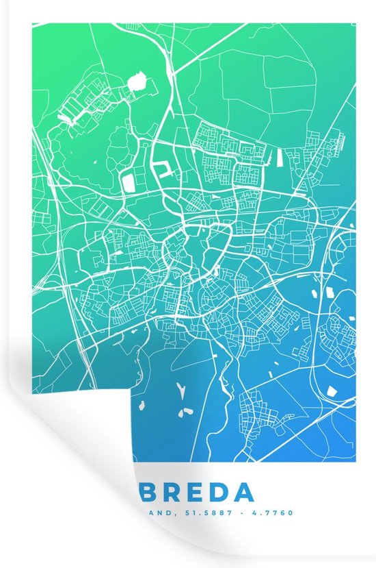 Stickers muraux - Plan de la ville - Breda - Blauw - Vert - 60x90 cm - Feuille adhésive - Carte