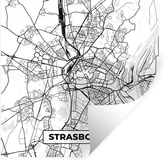 Stickers muraux - Plan de ville - Strasbourg - France - Plan - Plan d'étage - Zwart et blanc - 80x80 cm - Film adhésif