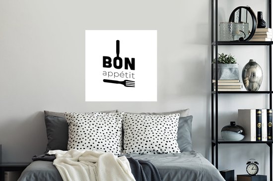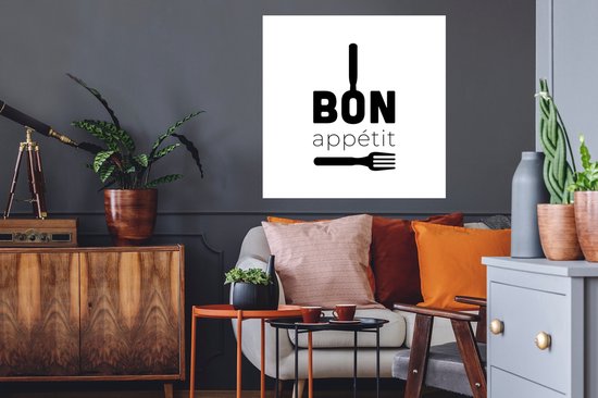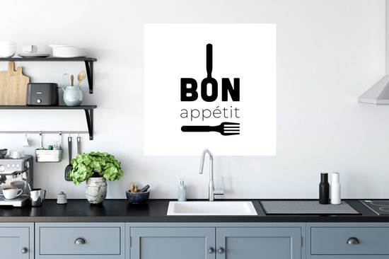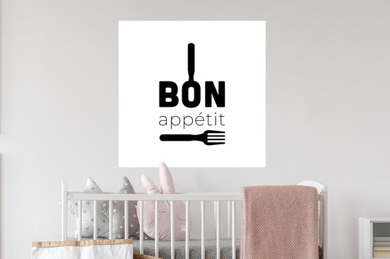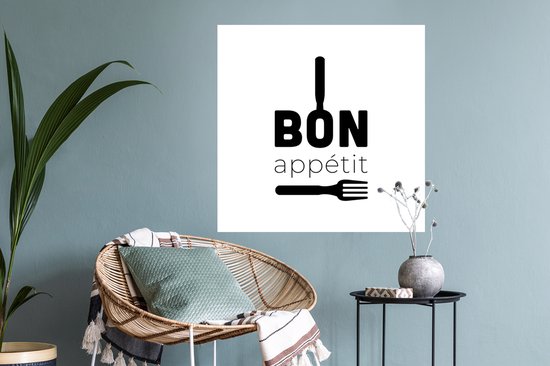 Stickers muraux - Proverbes - Bon appétit - Ustensiles de cuisine - Citations - 50x50 cm - Feuille adhésive