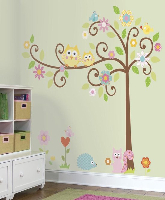 Stickers muraux Arbre frisé pour la chambre d'enfant, comprend 80 autocollants.