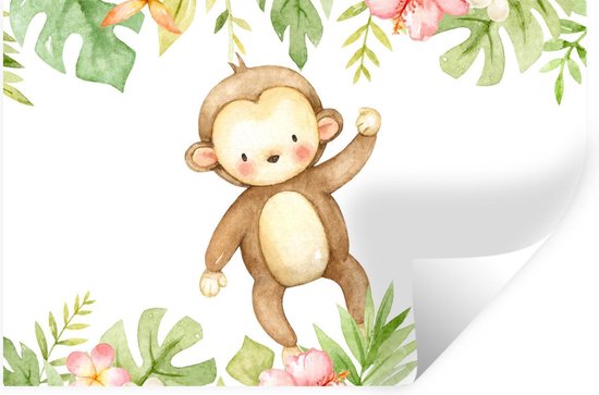 Stickers muraux - Singe - Jungle - Aquarelle - 30x20 cm - Feuille adhésive