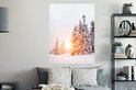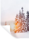 Stickers muraux - Soleil - Arbres - Neige - 90x120 cm - Film adhésif